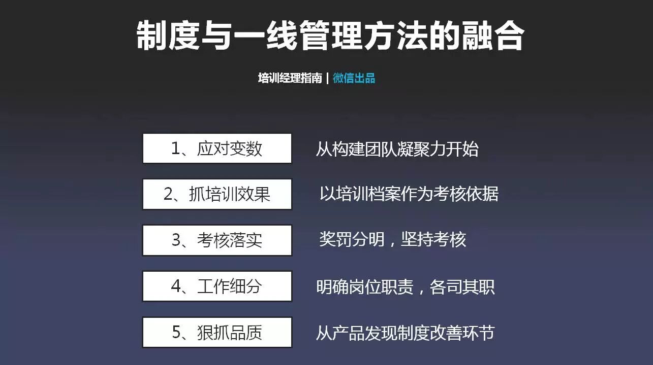 4、在车间我们经常听到最多的话就是:我们都是这样子做的,也没听人说什么啊。中国许多制造业管理者都利用经验式的管理方法去管理下属,怎么样做是对的,怎么样是错的。说教式的管理方法在90后员工身上吃不香,如果遇到问题,应该采取柔和的沟通方式,新员工是十分看重直接上司的第一印象。